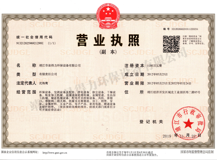 專利證書本公司坐落于開放開發(fā)超前城市江蘇靖江,我們精良優(yōu)秀設(shè)計(jì)團(tuán)隊(duì)始終遵循著創(chuàng)新超越的理念,贏得了中外合資企業(yè)的信賴。易得力環(huán)保設(shè)備有限公司與上海環(huán)科院等科研單位保持合作關(guān)系,不斷加大自身的科研力量,集中了一批國內(nèi)環(huán)境科技研究和應(yīng)用方面的高素質(zhì)人才,取得多項(xiàng)實(shí)用新型專利證書。…… 查看更多 >>